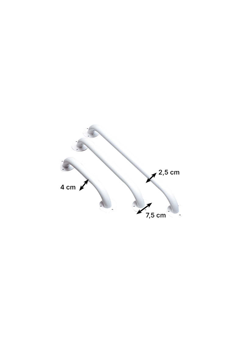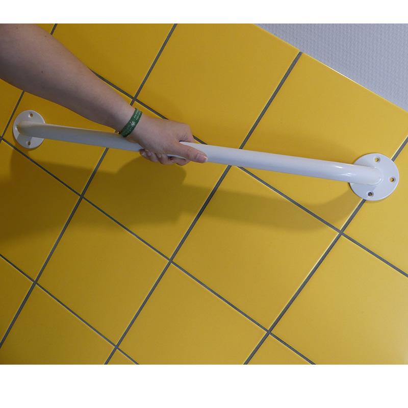 Barre d’appui permettant de se tenir en sécurité pendant les différents déplacements et gestes quotidiens, notamment dans votre douche. Une solution économique à fixer au mur. En acier époxy blanc avec consoles de fixation 3 trous pour une meilleure tenue au mur. Chevilles et vis non fournies à définir en fonction du mur support.Diamètre 25 mm. Écartement du mur 4 cm. Diamètre de la console de fixation 75 mm.