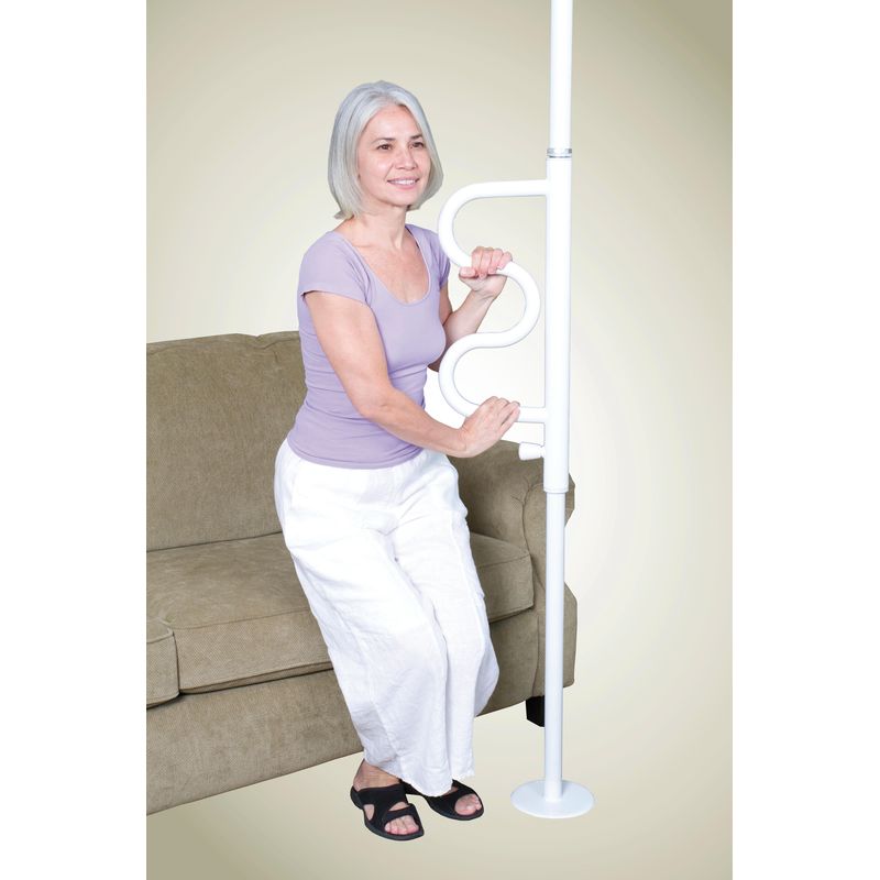 Cette barre d’appui Curve sol-plafond se fixe partout dans votre maison, sans avoir besoin d’un mur support. Elle se fixe entre le sol et le plafond par vérin d’extension. Elle se démonte en 3 parties et peut être emmenée en voyage facilement.Dimensions de la partie pivotante : 47 cm. Cette partie pivote et se bloque tous les 45 °. Acier avec peinture résistante à la corrosion. S’adapte sur les plafonds de hauteur de 2m10 à 3m.Diamètre de la base sol/plafond : 19 cmPoids 9 kg.Poids maximum autorisé 135 kg.