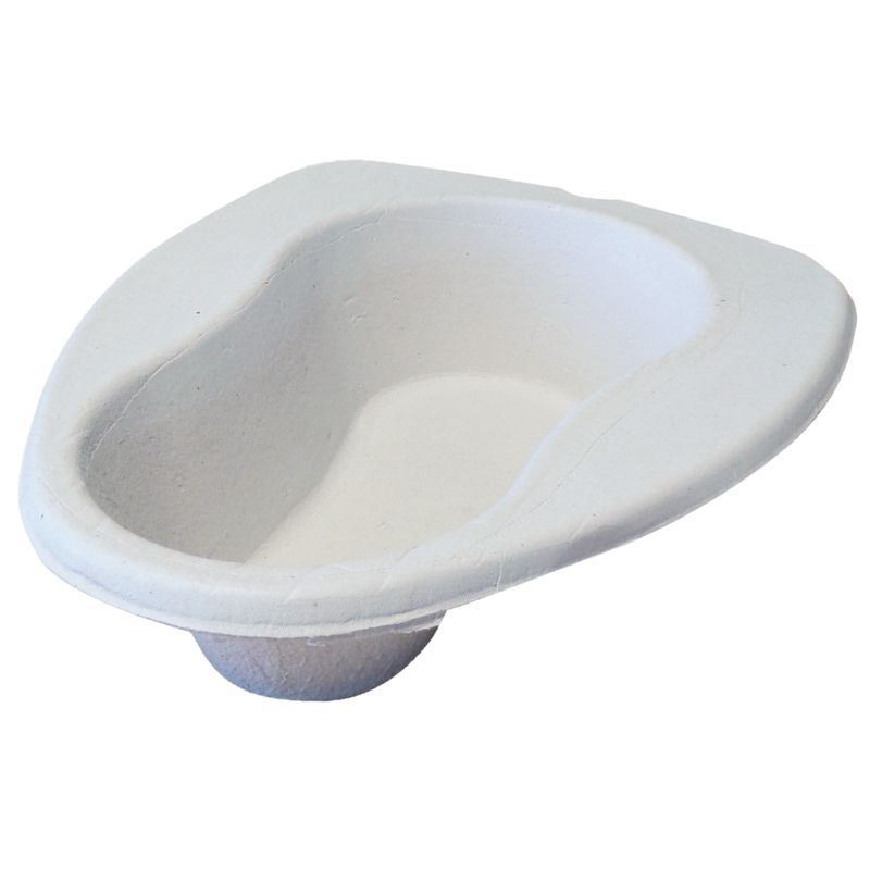 Bassin de lit à usage unique en fibre moulée. Produit étanche 7 heures. Dimensions 360 x 290 x 90 mm. Poids 66 gr. Contenance 1800 ml. Le lot de 100.