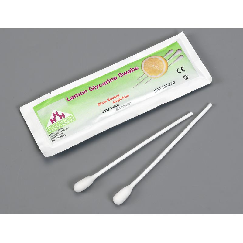 Bâtonnet soin de bouche, embout coton, imprégné citronné/glycériné, pour un soin buccal de bien-être. Apaise les muqueuses et les lèvres sèches. Bâtonnet non stérile. Sachet de 3.