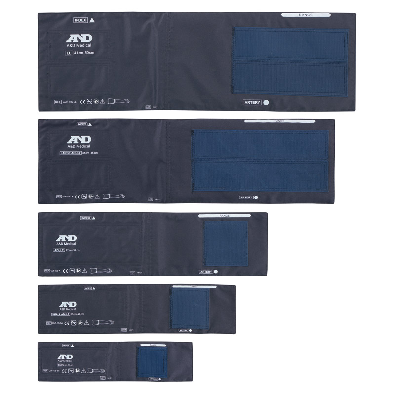 Compatible avec le tensiomètre de bras sur chariot à roulettes UM-211.Tailles disponibles :- XS : 12 17 cm- S : 16 – 24 cm- M : 22 – 32 cm- L : 31 – 45 cm- XL : 41 – 50 cm