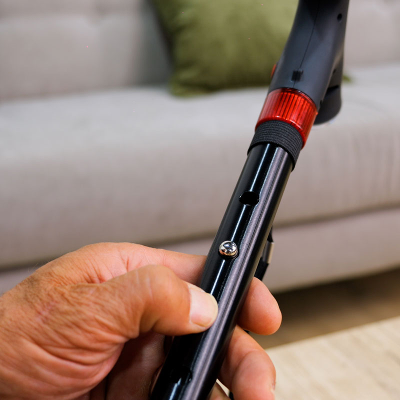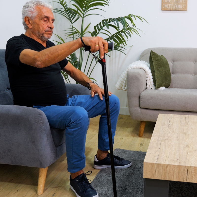 Canne pliante en 4 très pratique pour vos balades quotidiennes. Poignée anatomique confort soft. Equipée d’une lampe en LED orientable à l’avant et d’un système d’alarme sur le côté. Munie d’une dragonne.Fonctionne avec 2 piles AAA non fournies.Structure en aluminium.Hauteur poignée réglable de 83 à 95 cm en 5 positions.Poids maximum d’utilisation : 110 kg.Poids 345 gr.