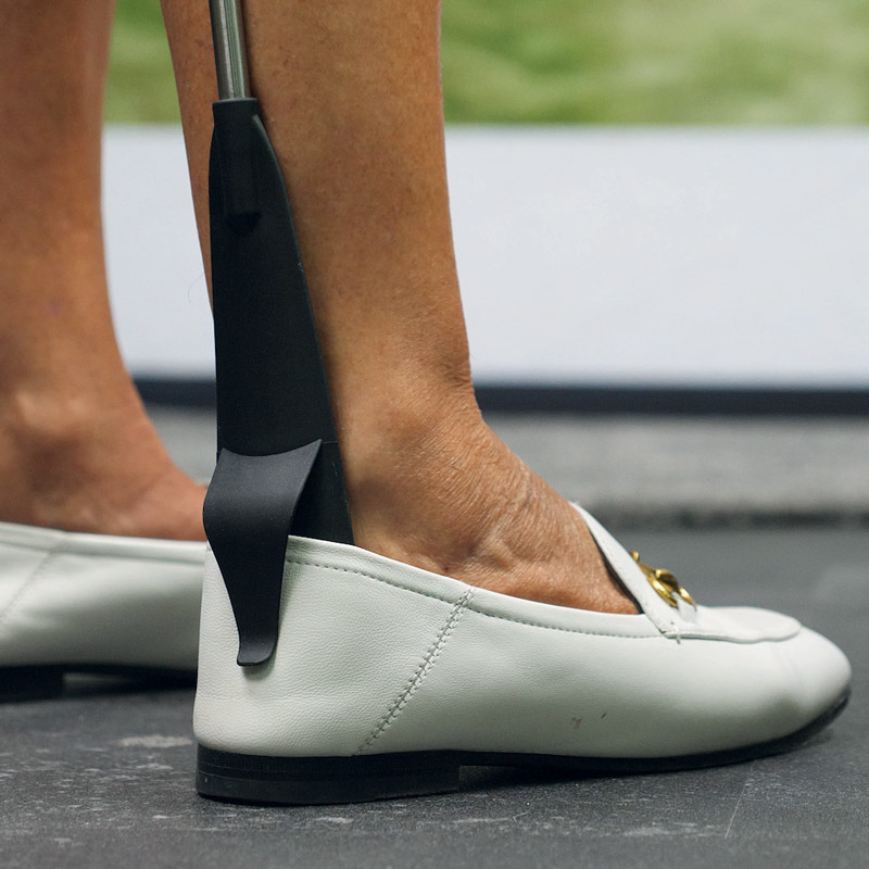 Ce chausse-pied pratique permet de vous chausser sans vous baisser. Vous choisissez la longueur en fonction de vos besoins. Il est équipé d’une pince évitant que la chaussure ne bouge. Acier chromé et polypropylène. Longueur de 54 à 75 cm.