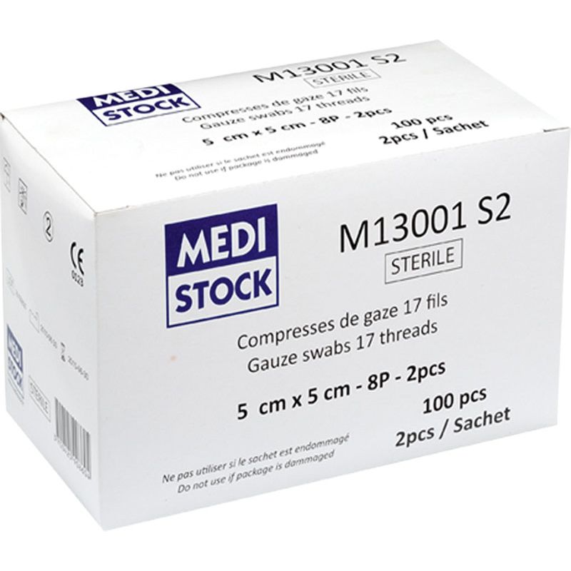 8 plis 17 fils.Modèles disponibles :- 5 x 5cm : 50 sachets de 2- 7,5 x 7,5cm : 100 sachets de 2- 10 x 10cm : 50 sachets de 2
