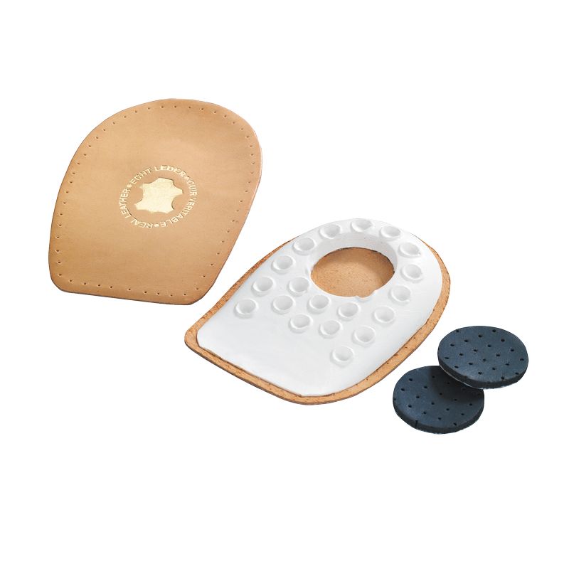 Coussinets spécialement étudiés pour une marche confortable même avec une épine calcanéenne. Livrées à la paire avec bouchon pour combler l’espace évidé. Pastille autocollante pour la fixation dans la chaussure. Surface de contact en cuir véritable3 pointures disponibles : 35/37, 38/40 et 41/43.