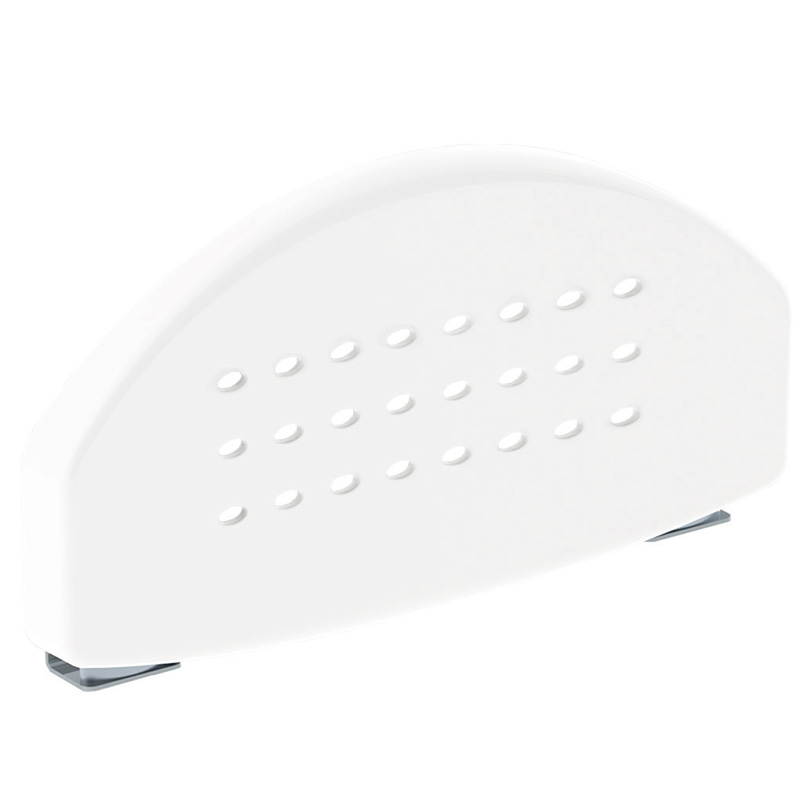 Dossier en mousse souple imputrescible sur platine aluminium à fixer au mur. Il vous apporte un confort supplémentaire. Utilisable avec tous les sièges de douches rabattables.Dimensions : Larg. 43 x haut. 15 x épaisseur 3 cm.