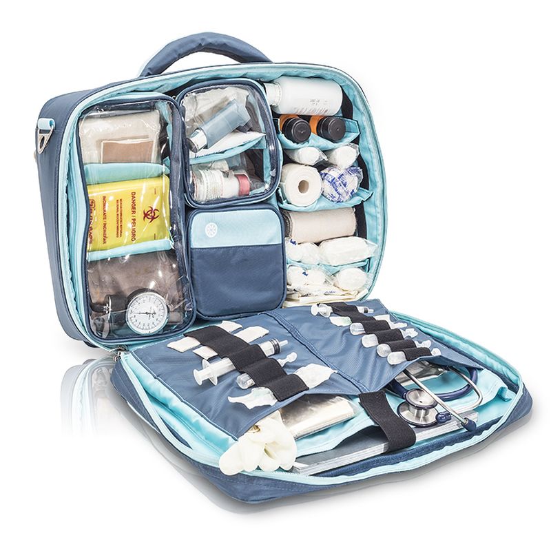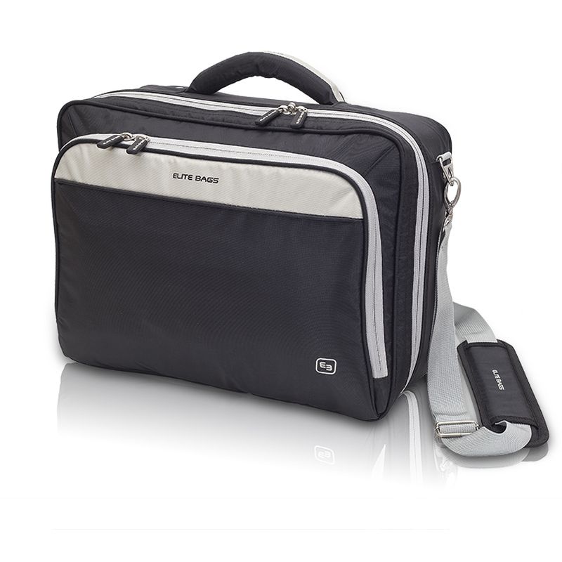 Poignée rembourrée. Poche frontale pour documents. Élastiques de rangement.4 compartiments transparents détachables. Poches de tailles diverses. Séparateurs internes velcro réglables. Bretelles sac à dos dissimulées. Bandoulière. Compatible chariot à roulettes. Protection en caoutchouc sur le dessous.Vendue sans consommablesColoris : Bleu ou Noir/Blanc.Dimensions : 17x40x30 cm.Poids : 1,9 kg