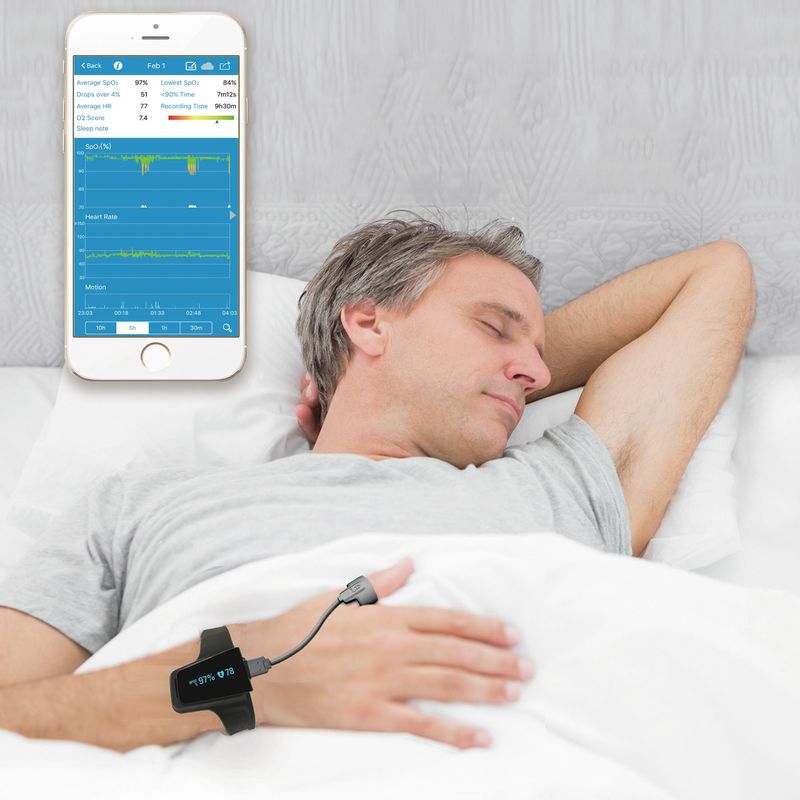 Cet oxymètre professionnel mesure le taux d’oxygène dans le sang, mais aussi les pulsations cardiaques, le nombre de pas journalier et les mouvements durant le sommeil. Affichage de l’heure. Livré avec un capteur souple pour le suivi des apnées du sommeil. Connecté à l’application Check 02 en Bluetooth. Autonomie 8 heures. Batterie rechargeable par câble USB. Avec capteur souple pour la nuit.Dimensions : 40 x 25 x 15 mm. Poids 35 gr.