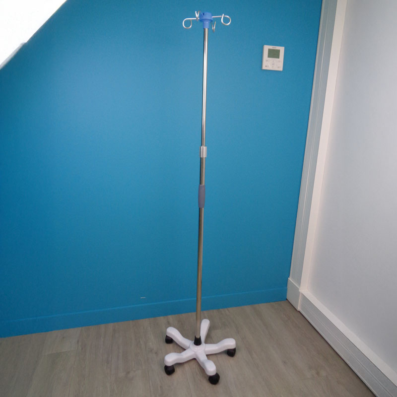 Pied porte-serum Eco :4 crochets aluminium. Piétement lourd et stable en fonderie avec enveloppe de protection plastique. Base 3 roulettes diamètre 41 cm. Tube en acier inox. Support de crochets en ABS. Hauteur réglable 114,5 à 206 cm. Poids 3,4 kg.Pied porte-serum Pro :4 crochets aluminium. Piétement lourd et stable en fonderie avec enveloppe de protection plastique. Base 5 roulettes diamètre 39 cm. Tube en acier inox. Support de crochets en ABS. Hauteur réglable 114,5 à 206 cm. Poids 4,5 kg.