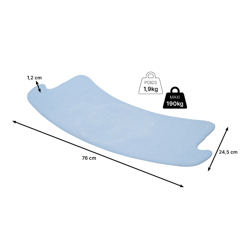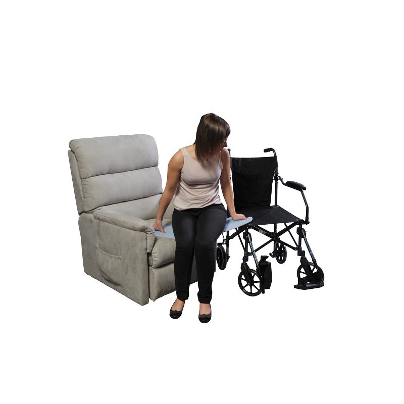 Notre planche de transfert Ergo Identités a été développé pour rendre les transferts plus sûrs et plus faciles. Sa forme incurvée permet de tourner plus facilement autour des obstacles. Elles est équipée de 2 découpes permettant d’accrocher les tubes de fauteuil. Le dessous de cette aide aux transferts est renforcé pour convenir aux personnes plus lourdes. Les 2 extrémités sur le dessous sont surmoulées avec un matériau antidérapant permettant de se transférer à partir de surfaces lisses. Matériau plastifié ultra-résistant. Glisse exceptionnelle. Coloris bleu-gris.Poids 1,9 kg.Dimensions : Long. 76 x larg. 24,5 x épaisseur 1,2 cm. Poids maximum autorisé 190 kg.