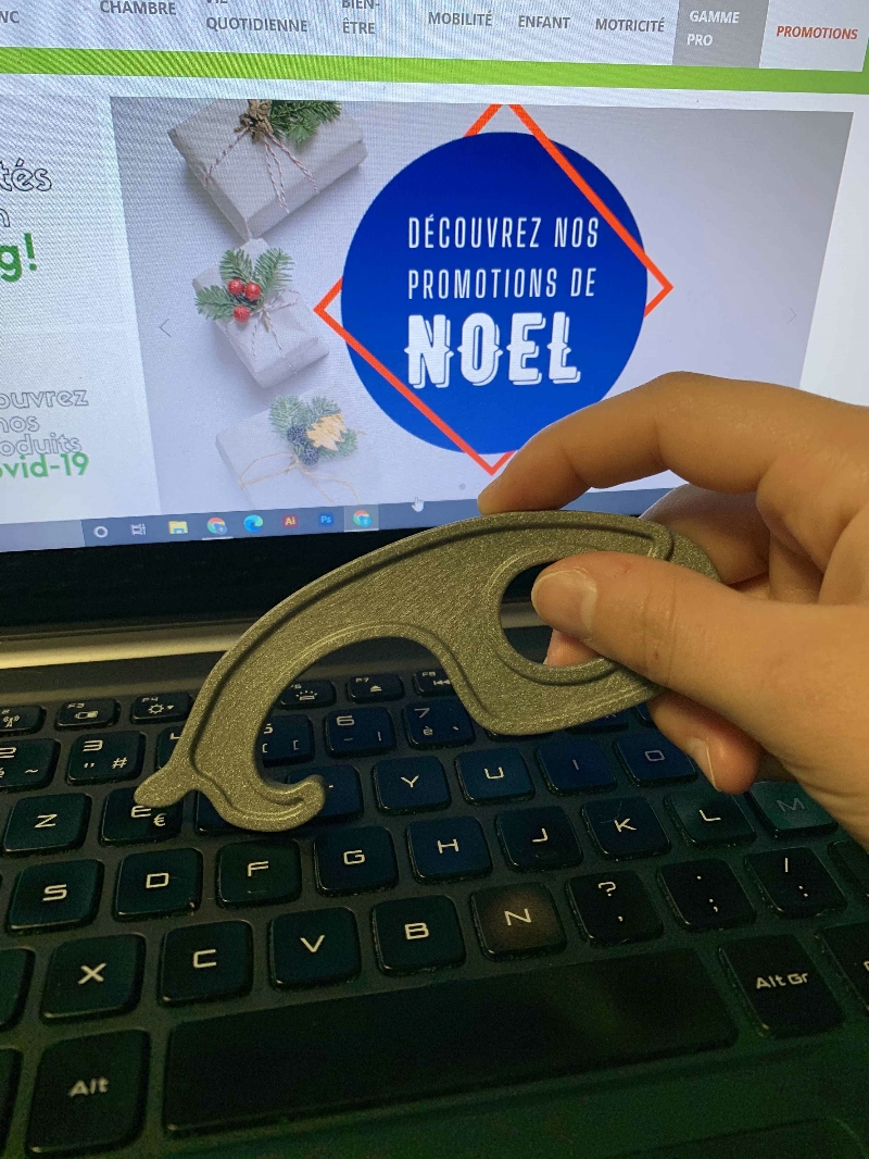 Grâce à la poignée sans contact vous pouvez ouvrir des portes, taper sur un clavier d’ordinateur etc. La poignée sans contact réduit la surface de contact et vous permet de garder les mains propres.