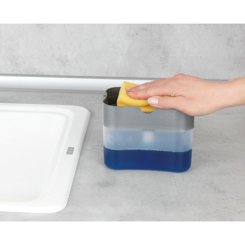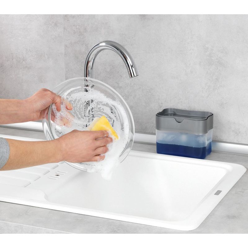Ustensile 2 en 1 : porte-éponge et distribution de liquide d’une seule main, ultra-simple. Dosage optimal sans excès. Idéale pour les personnes avec des difficultés de préhension. Niveau deliquide vaisselle restant clairement visible.Matière plastique PP. Capacité 500 ml.Dimensions : 14 x 11 x 9,3 cm.Poids 125 gr.