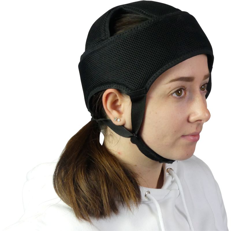 Protection englobante et réglable pour la tête. Réalisé à partir de néoprène matelassé et respirant. Lavage à 30°C. Fermeture sous le menton par sangle velcro. Coloris noir.3 tailles disponibles en fonction du tour de tête:
