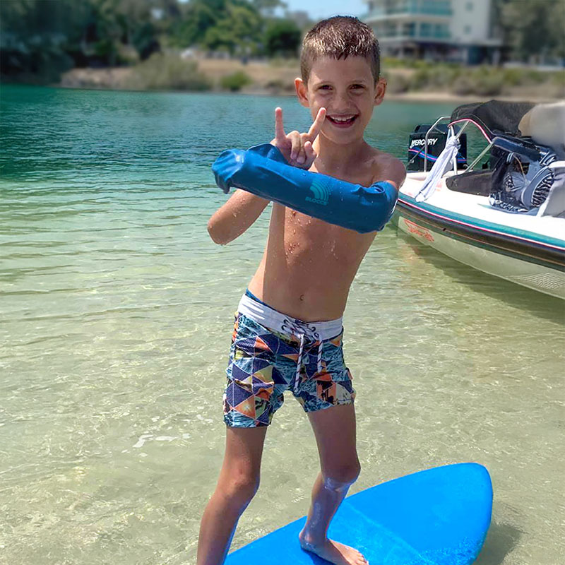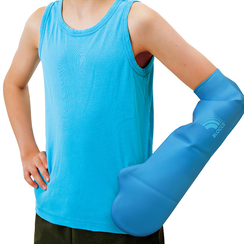 Le protecteur étanche Bloccs est spécialement conçu pour protéger un plâtre ou un pansement et permettre à l’utilisateur de prendre un bain ou une douche sans aucune gêne. Il est parfaitement submersible et peut être utilisé à la plage ou à la piscine. Facile à entretenir. Caoutchouc naturel bleu.Tailles disponibles :Tailles idéales pour les enfants:- Long. 33 cm : Circonférence étanchéité : 16-18 cm. (Taille Child XS du guide vidéo)- Long. 43 cm : Circonférence étanchéité : 17-19 cm. (Taille Child S du guide vidéo)- Long. 51 cm.- Long. 52 cm : Circonférence étanchéité : 18-22 cm. (Taille Child M du guide vidéo)- Long. 53 cm : Circonférence étanchéité : 20-26 cm. (Taille Child L du guide vidéo)- Long. 66 cm : Circonférence étanchéité : 22-28 cm. (Taille Child XL du guide vidéo)Tailles idéales pour les adultes:- Long. 55 cm : Circonférence étanchéité : 26-36 cm. (Taille Adult Short du guide vidéo)- Long. 72 cm : Circonférence étanchéité : 28-38 cm. (Taille Adult Long du guide vidéo)Notre guide des tailles dans la section documentation pourra vous accompagner à choisir la taille la plus adaptée à l’utilisateur.