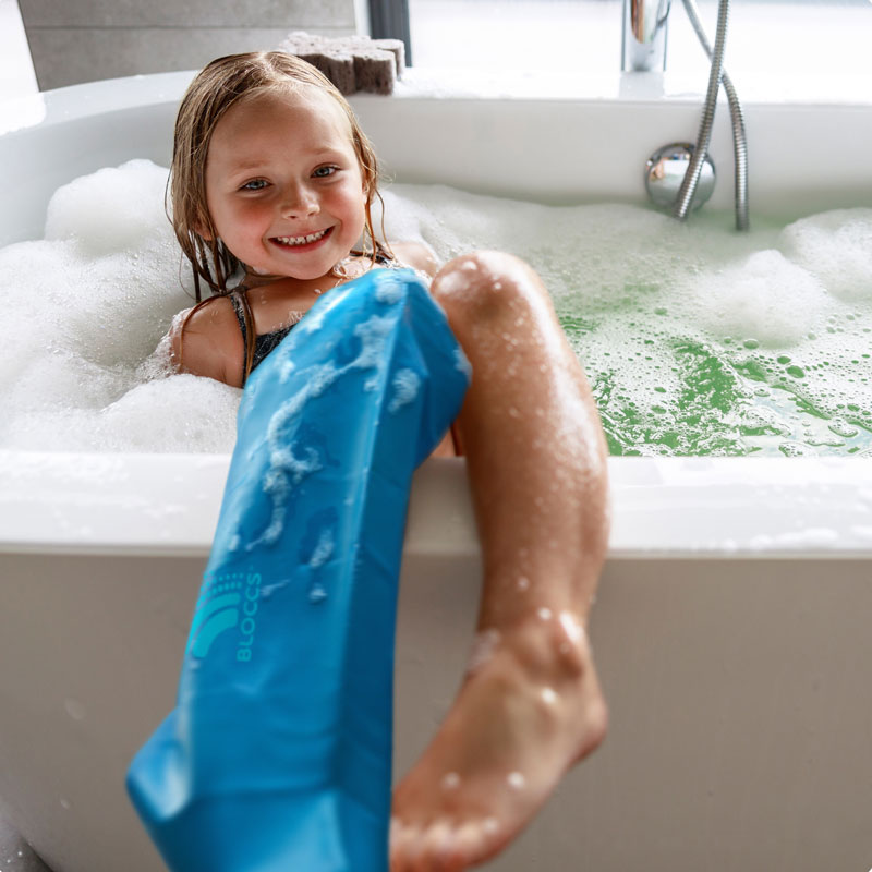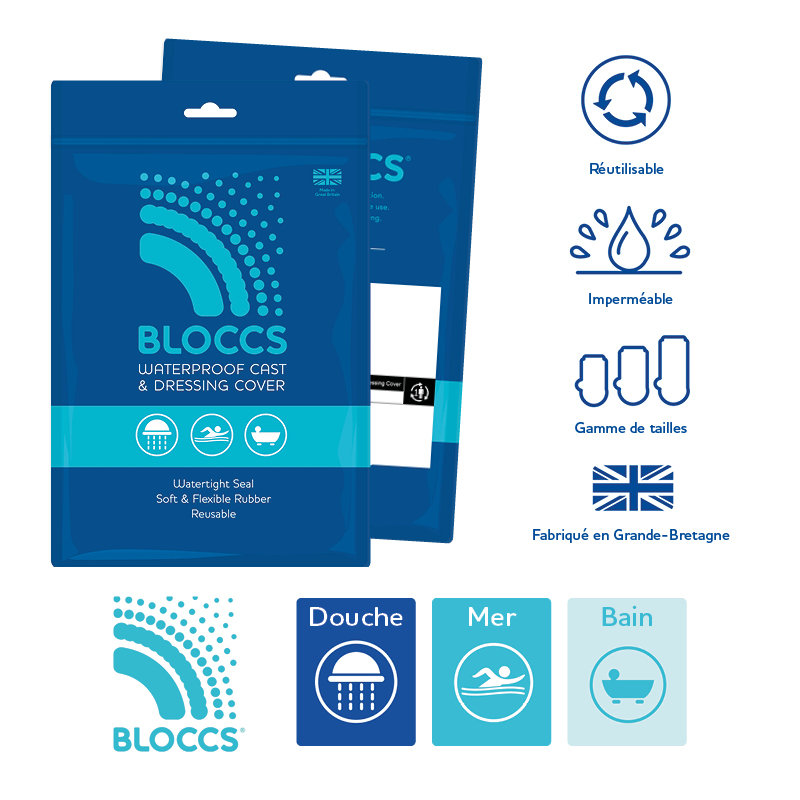 Le protecteur étanche Bloccs est spécialement conçu pour protéger un plâtre ou un pansement et permettre à l’utilisateur de prendre un bain ou une douche sans aucune gêne. Il est parfaitement submersible et peut être utilisé à la plage ou à la piscine. Facile à entretenir. Caoutchouc naturel bleu.Tailles disponibles : Tailles idéales pour les enfants :- Long. 35 cm : Circonférence étanchéité : 20-23 cm. (Taille Child XS du guide vidéo)- Long. 41 cm : Circonférence étanchéité : 22-25 cm. (Taille Child S du guide vidéo)- Long. 56 cm : Circonférence étanchéité : 24-32 cm. (Taille Child M du guide vidéo)- Long. 69 cm : Circonférence étanchéité : 31-44 cm. (Taille Child L du guide vidéo)- Long. 77 cm : Circonférence étanchéité : 43-58 cm. (Taille Child XL du guide vidéo) Tailles idéales pour les adultes:- Long. 67 cm : Circonférence étanchéité : 30-42 cm. (Taille Adult Short du guide vidéo)- Long. 96 cm : Circonférence étanchéité : 52-68 cm. (Taille Adult Long du guide vidéo)Notre guide des tailles dans la section documentation pourra vous accompagner à choisir la taille la plus adaptée à l’utilisateur.