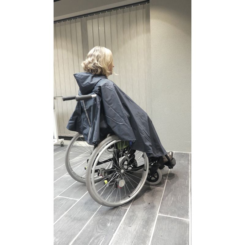 Le Poncho Plus s’enfile rapidement en cas de pluie, sans quitter le fauteuil. Il est équipé d’une capuche avec serrage et d’une ouverture par fermeture éclair sur le buste, fermeture manoeuvrable des 2 côtés. Muni de 2 passages pour les barres de poussée, d’une poche intérieure, d’une bande réfléchissante à l’arrière et de 2 sangles de maintien sur les côtés.Tissu imperméable.Taille universelle (longueur à l’avant 98 cm).