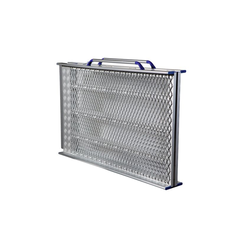 Rampe pliable en 2, perforée et antidérapante, permettant des accès facilités aux véhicules ou aux bâtiments. Munie de longues poignées faciles à attraper, avec système de verrouillage.Structure aluminium. Largeur utile intérieure 82 cm. Longueurs disponibles :- 160 cm : 85 cm pliée. Poids 18 kg.- 200 cm : 105 cm pliée. Poids 21 kg.- 250 cm : 130 cm pliée. Poids 25 kg.- 279 cm : 145 cm pliée. Poids 29 kg.Résistance 400 kg.
