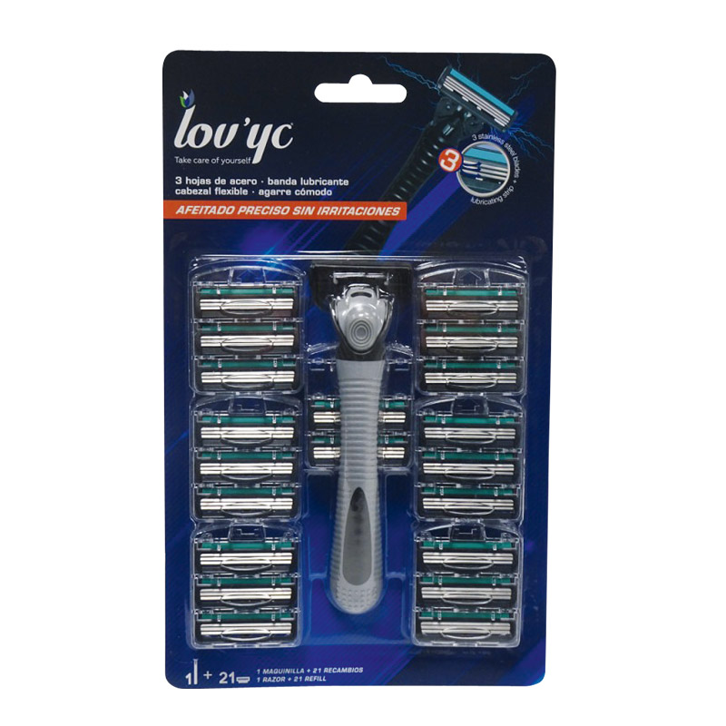 Modèles disponibles :- 2 lames : Paquet de 10 rasoirs jetables.- 3 lames : 1 manche réutilisable. 21 lames incluses.