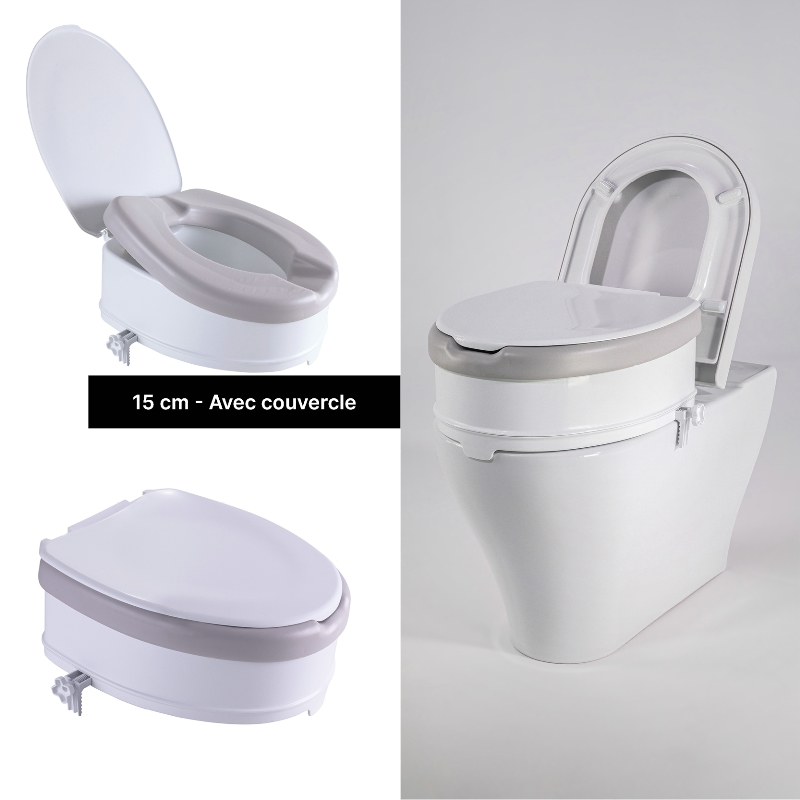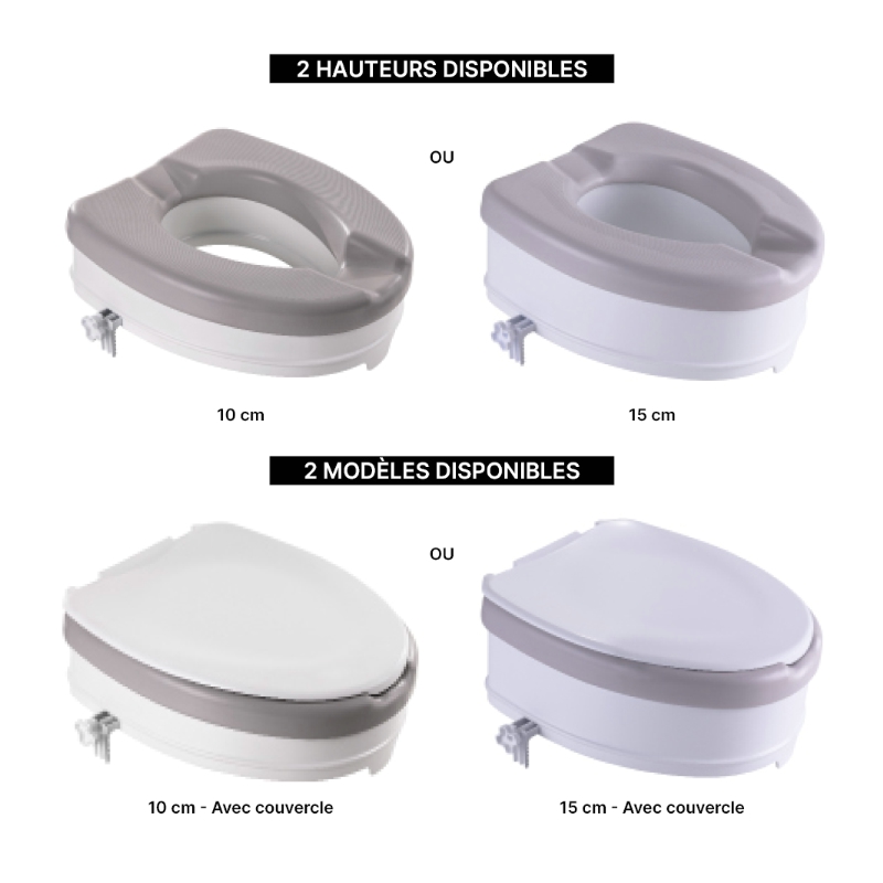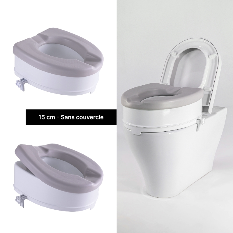 Cette rehausse WC Ibiza s’installe très facilement sur votre cuvette grâce à son système d’attache ultra-pratique. Elle vous permet d’être assis plus haut et vous relever plus facilement. Elle est équipée d’un coussin souple pour votre confort. Ce coussin est amovible, anti-bactérien, et facile à entretenir. Forme ergonomique avec facilité d’accès à l’arrière et à l’avant.Rehausse coloris blanc et coussin amovible gris clair.4 modèles disponibles en 2 hauteurs.Poids maximum : 250 kg