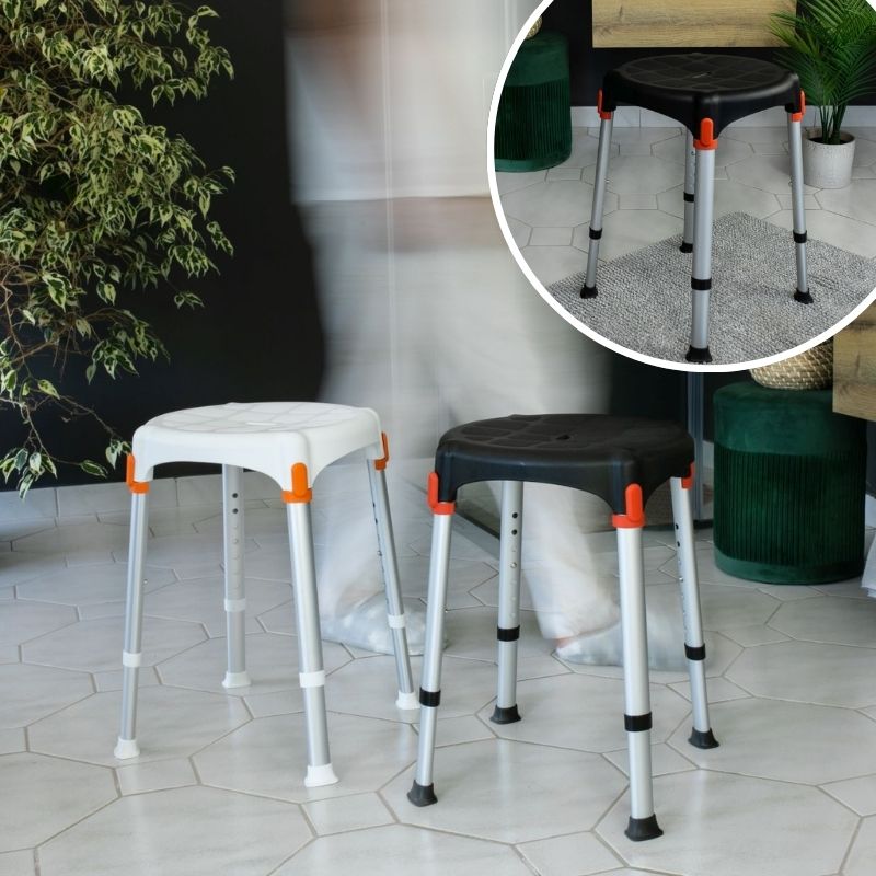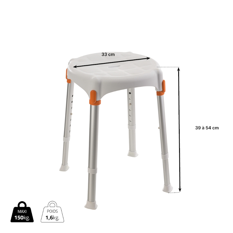 Les tabourets Capri vous permettent de prendre votre douche en toute sécurité et confortablement installés. La structure complète a été renforcée pour porter à 150 kg la résistance pour les tabourets standards et 170 kg pour les tabourets avec plateau. Assemblage sans outil.Pour davantage de confort, vous trouverez en option des coussins d’assise en mousse imperméable et désinfectable EVA coloris gris ou bleu.Structure en aluminium et polypropylène.Fabriqués en Italie.Dimensions : larg. 33 x prof. 33 x haut. réglable de 39 à 54 cm.Poids : 1,6 kg.Poids maximum utilisateur : 150 kg pour les tabourets standards et 170 kg pour le tabouret avec plateau.