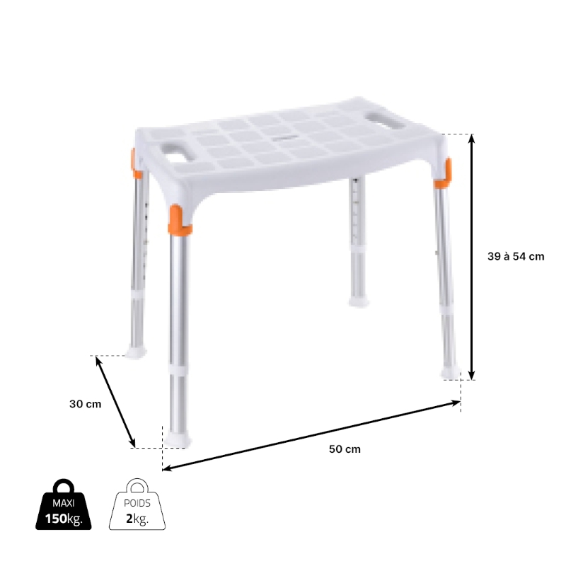 Les tabourets Capri vous permettent de prendre votre douche en toute sécurité et confortablement installés. La structure complète a été renforcée pour porter à 150 kg la résistance pour les tabourets. Assise large pour davantage de confort. Assemblage sans outil. Vous pourrez prendre appui sur les poignées pour vous asseoir et vous relever facilement.Pour davantage de confort, vous trouverez en option des accoudoirs et coussins d’assise en mousse imperméable et désinfectable EVA coloris gris ou bleu, adaptés à toutes les formes d’assises Capri. Structure en aluminium et polypropylène.Fabriqués en Italie.Dimensions : larg. 50 x prof. 30 x haut. réglable de 39 à 54 cmPoids : 2 kgPoids maximum utilisateur : 150 kg