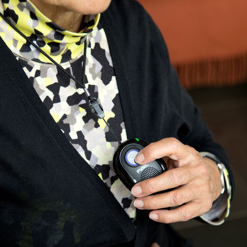 Téléphone filaire avec émetteur d’alarme SOS sans fil, avec répondeur intégré, grand écran rétroéclairé et visualisation lumineuse des appels entrants. 3 touches d’appel avec photos, clavier XXL, volume de la sonnerie amplifiée (+24dB). Fonction ,mains libres. Mémoire 50 contacts. Le bouton d’urgence SOS sans fil permet appels et réception mains libres et 2 touches d’appels directs, portée 50 m. Station de chargement, cordon tour de cou et clip ceinture inclus. Téléphone fonctionnant sur adaptateur (inclus).