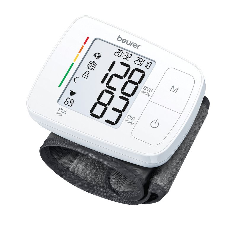 Tensiomètre mesure entièrement automatique de la tension artérielle et du pouls au-niveau du poignet. Avec brassard pour circonférence de poignet 14 à 19,5 cm. Détection d’arythmie. 2 mémoires utilisateurs pour 60 mesures stockées chacune. Affichage clair et annonce vocale avec volume réglable. Livré avec pochette de rangement. Dimensions : 87 x 67 x 31 mm. Poids 105 gr.Alimentation par 2 piles AAA fournie.Garantie 5 ans.