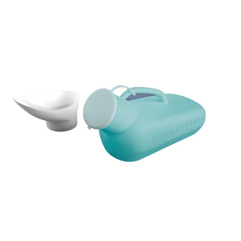 Urinal pour personnes alitées. Utilisation unisexe grâce à l’embout fourni. Bouchon de fermeture.Graduation jusqu’à 800 ml.Coloris blanc, photo non contractuelle.Longueur 25 cm.